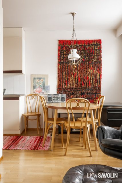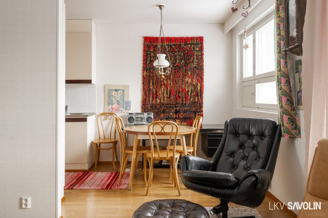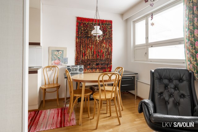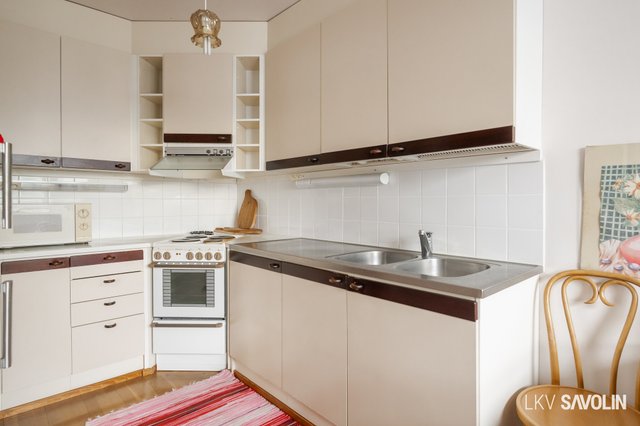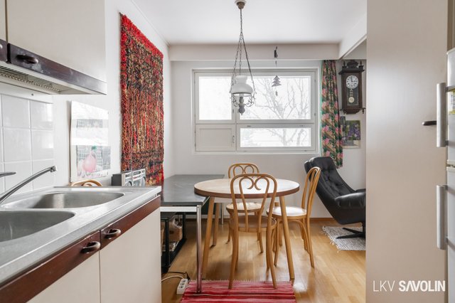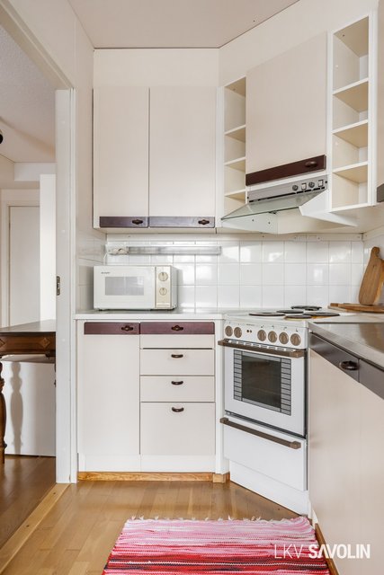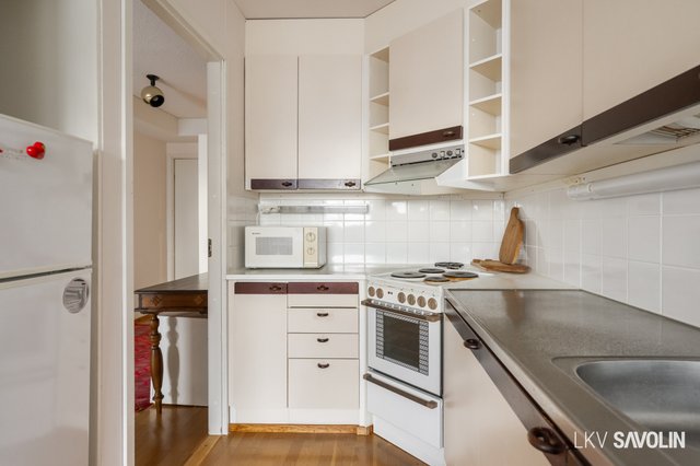 Keittiö on varustettu peruslaitteilla, ja kylpyhuone remontoitu 2016, jossa kaikki tarvittava arjen sujuvuuteen. Asunnosta löytyy myös oma sauna, jossa rentoutuminen on taattu. Makuuhuone on tilava ja siellä on kätevä vaatehuone lisäsäilytystilana.