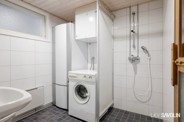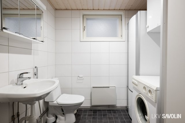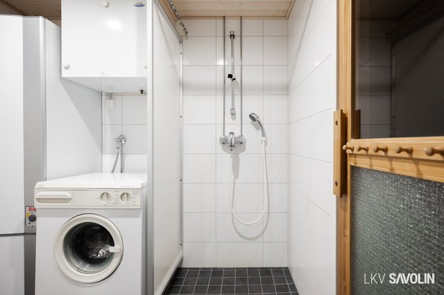 - WC-istuin, suihku, suihkuseinä, pesukoneliitäntä, peilikaappi, pesuallas, bidee-suihku, ja lämminvesivaraaja, ilmanvaihtokone