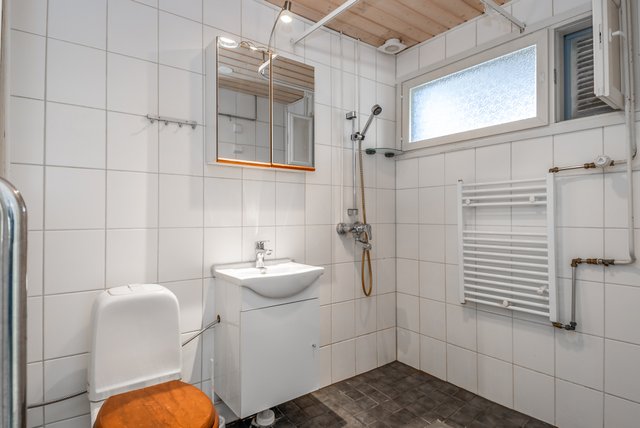 - WC-istuin, suihku, peilikaappi, allaskaappi, pesukoneliitäntä, lattialämmitys, ja pyyhekuivain
