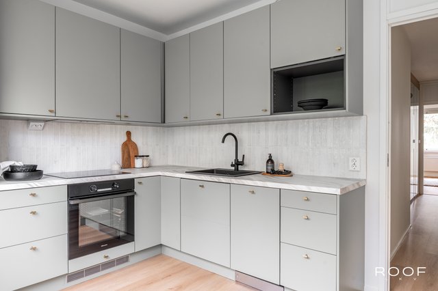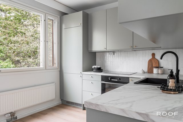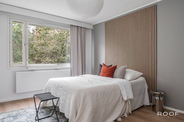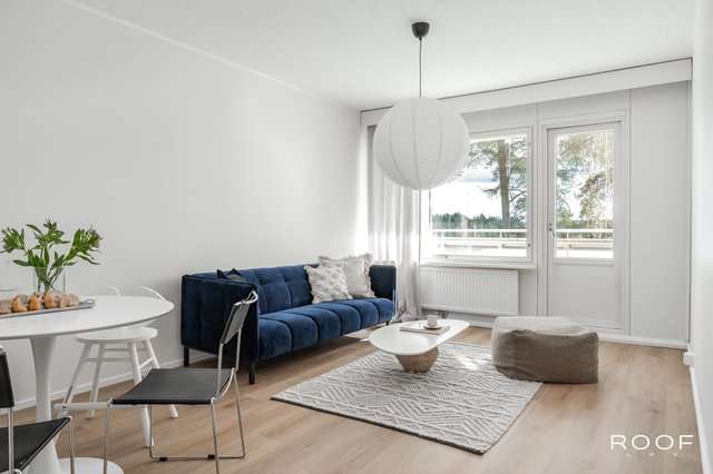 Asunto on juuri valmistunut kattavasta pintaremontista, jossa on käytetty laadukkaita ja aikaa kestäviä materiaaleja. Harmoniset sävyt ja tyylikkäät ratkaisut luovat kodikkaan ja modernin tunnelman. Suuri, valoisa olohuone yhdistyy käytännölliseen pohjaratkaisuun, ja päämakuuhuoneen yhteydessä oleva tilava vaatehuone tuo arkeen ripauksen luksusta.