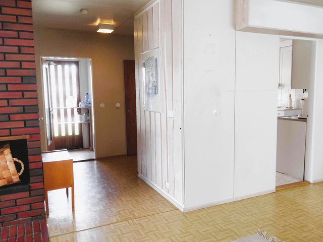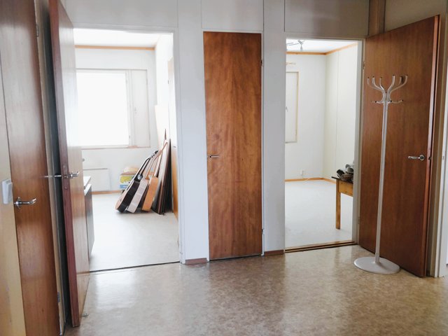 - Kahden makuuhuoneen lattialla muovimatto. Yhden makuuhuoneen lattialla parketti.