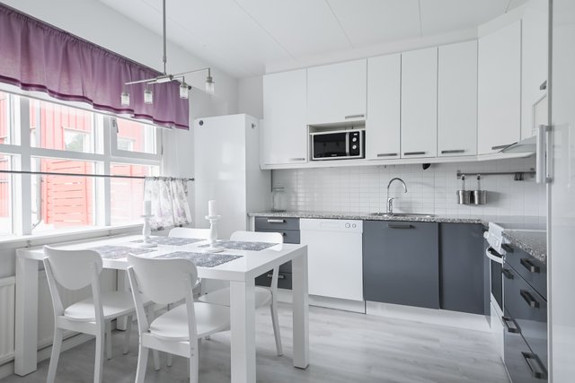 - Jääkaappipakastin, uuni, liesi, liesituuletin, ja astianpesukone