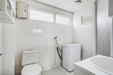 - Suihku, suihkukaappi, peilikaappi, wc-istuin, allas, allaskaappi, seinähylly, pesukoneliitäntä, ikkunat (2kpl), lattia (laatta) ja seinät (laatta). Kylpyhuone tulee saneerata pikaisesti.