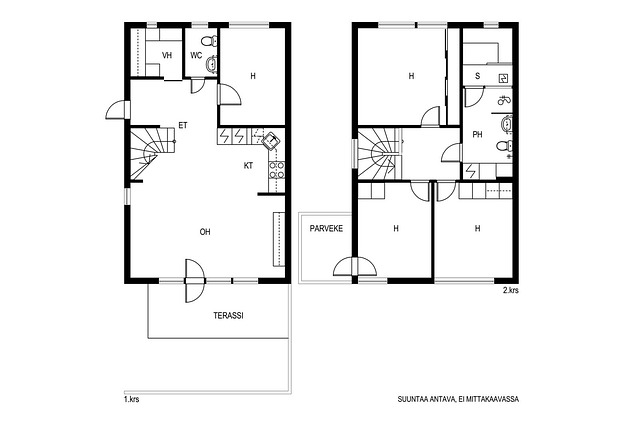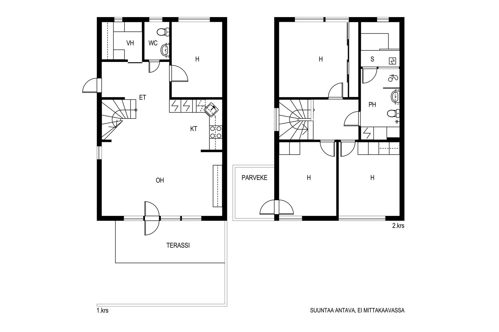 Tässä kodissa on erinomainen pohjaratkaisu. Alakerrassa on avokeittiö, joka yhdistyy tilavaan ruokailutilaan ja valoisaan olohuoneeseen. Olohuoneesta on kulku suojaisalle ja aidatulle eteläpihalle. Alakerrassa on myös huone, joka soveltuu hyvin työ- tai vierashuoneeksi. Käyttömukavuutta lisää erillinen wc ja eteisen yhteydessä oleva vaatehuone.