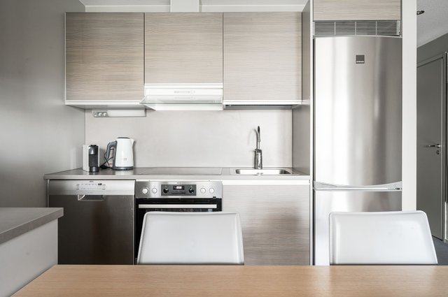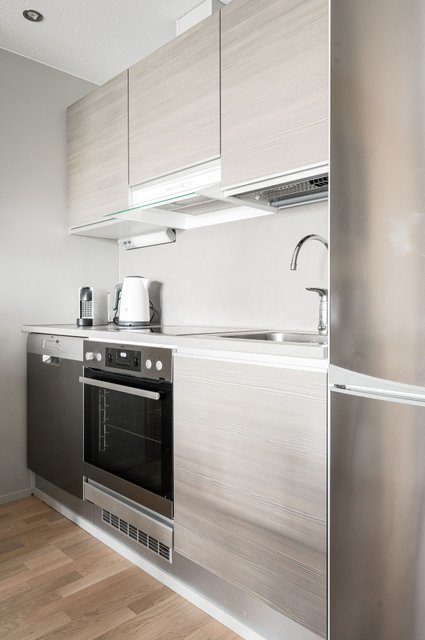 - Jääkaappipakastin, astianpesukone, liesi, erillisuuni, liesituuletin, ja mikroaaltouuni