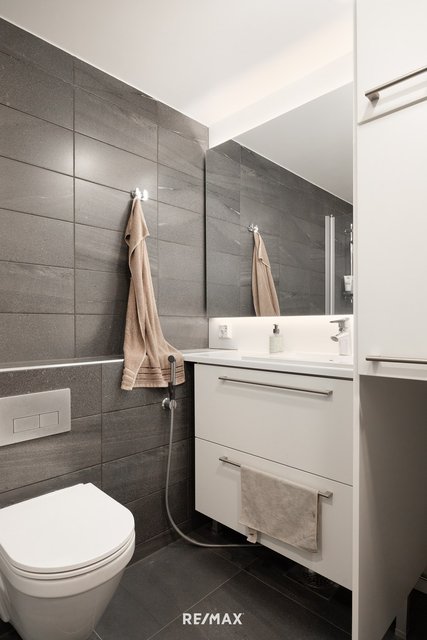 - WC-istuin, suihku, pesukoneliitäntä, peilikaappi, pesuallas, allaskaappi, lattialämmitys, bidee-suihku, ja suihkuseinä
