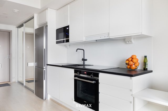 Asunnossa on avokeittiö, jossa on kaikki tarvittavat varusteet, kuten induktioliesi, integroitu mikro sekä astianpesukone. Kylpyhuone on tyylikäs ja käytännöllinen, varustettu lattialämmityksellä, suihkuseinällä, peili- sekä allaskaapein, siellä on myös tilaa pesukoneelle. Taloyhtiö tarjoaa asukkailleen monipuolisia palveluita, kuten muunmuassa urheiluvälinevaraston ja kuivaushuoneen, sekä 13:sta kerroksessa kuntosalin ja saunaosaston.