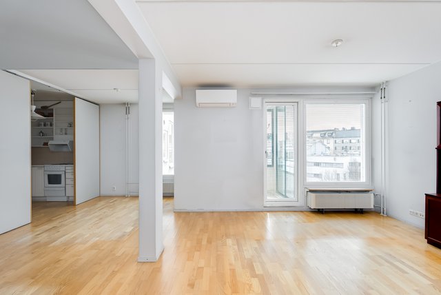 Cozy two-bedroom apartment in the heart of Kamppi. Features a spacious bathroom, private sauna, air conditioning, and a glazed balcony. A garage space is available for €90/month. Original 90s condition – ready for your personal touch. Check out the designer’s vision for an upgrade!