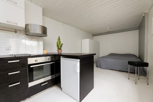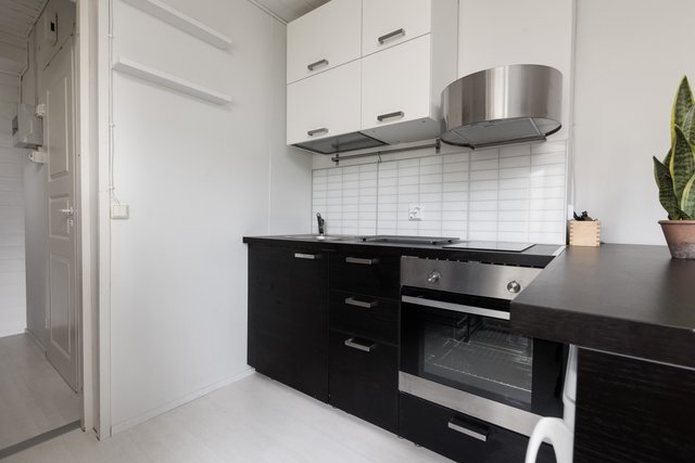- Jääkaappipakastin, mikroaaltouuni, astianpesukone, liesituuletin, liesi, ja erillisuuni