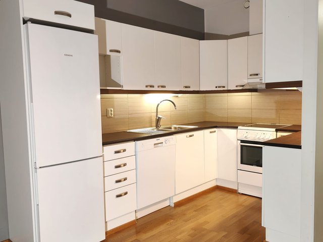 - Jääkaappipakastin, liesi, liesituuletin, ja astianpesukone