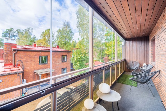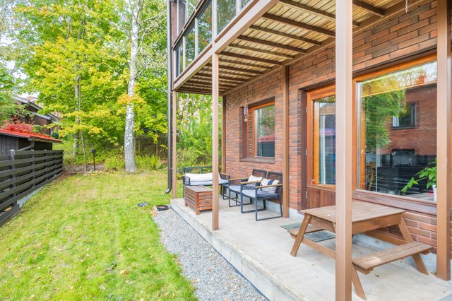 Asunto on kahdessa kerroksessa, ja sen parvekkeet avautuvat sekä itään että länteen. Piha-alue on vehreä ja suojaisa ja asunnolle kuuluu myös oma autotalli. Lämmitys hoituu kaukolämmöllä ja ilmalämpöpumpulla, mikä takaa miellyttävän sisäilmaston ympäri vuoden.
