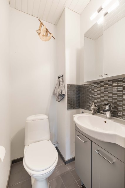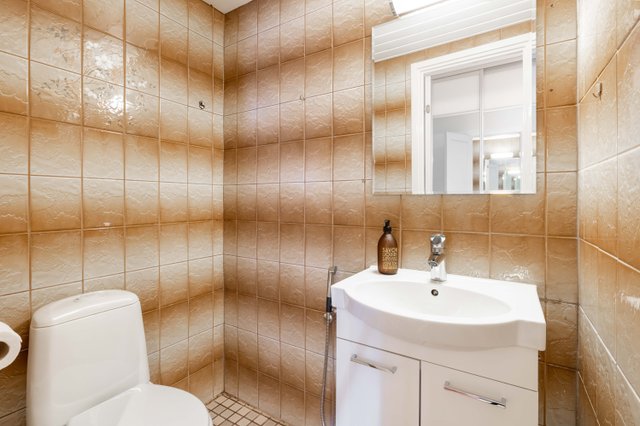 - Pesukoneliitäntä, suihku, suihkuseinä, lattialämmitys, peili, ja pesuallas