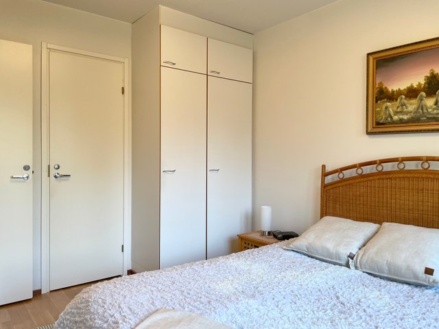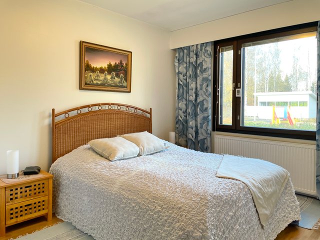 - Parkettilattia, seinät maalattu. Makuuhuoneen yhteydessä kaapisto ja vaatehuone.
