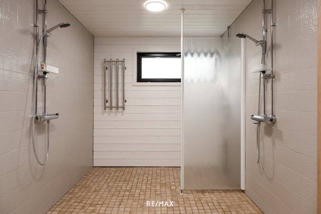 - Kylpyhuoneessa alkuperäinen kaakelointi. Seinät kaakelimaalattu 2024. Varustus: suihku 2 kpl, suihkuseinä, lattialämmitys, kuivauspatteri