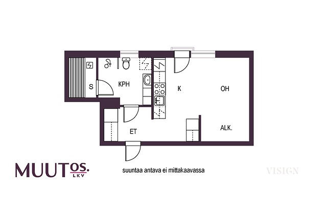 - Pinta-ala ei ole tarkistusmitattu. Pinta-ala saattaa poiketa olennaisestikin ilmoitettavasta pinta-alasta. Todellinen pinta-ala voi siis olla esitteessä, yhtiöjärjestyksessä tai isännöitsijäntodistuksella mainittua suurempi tai pienempi. Hinta ei ole pinta-alaperusteinen. Yhtiöjärjestyksen mukainen huoneistoselitelmä: 1h+kt+alk+s