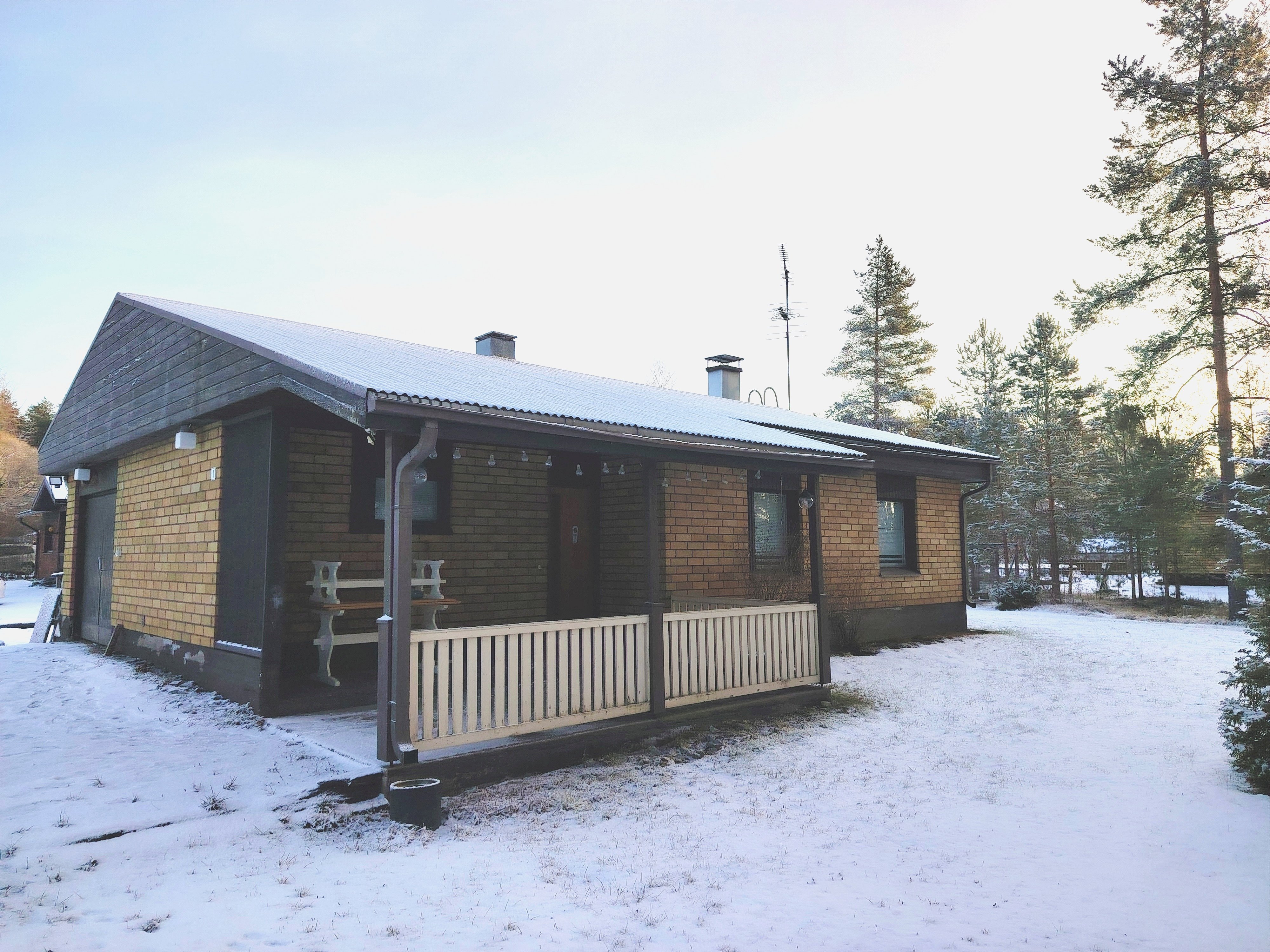 Omalla tontilla kolmion kokoinen omakotitalo Vetelin Tunkkarissa. Talossa on takka ja sähkölämmitys. Tiilivuorattu, puurunkoinen talo näyttäisi olevan kunnossa, märkätilat ja sauna on uusittu 2000 luvulla.