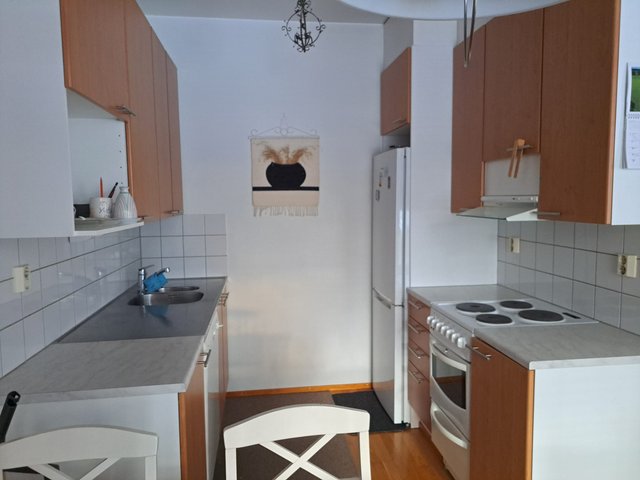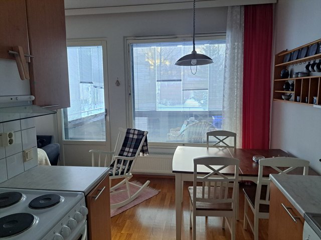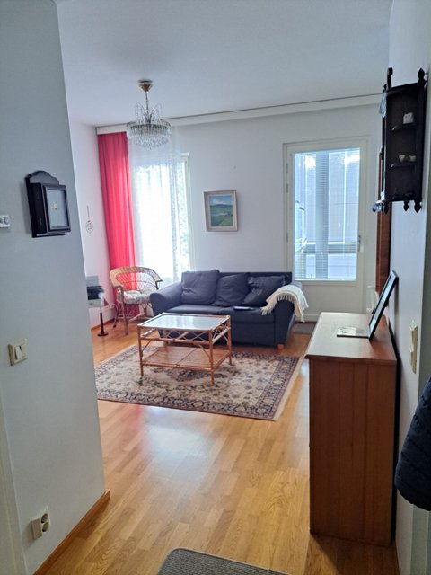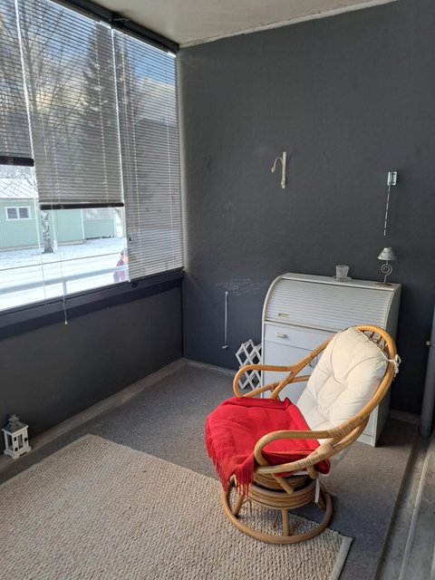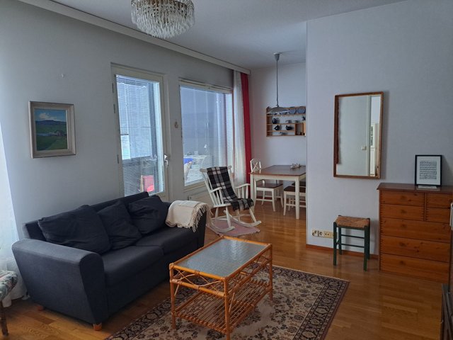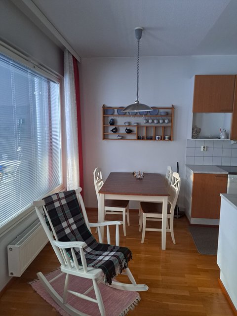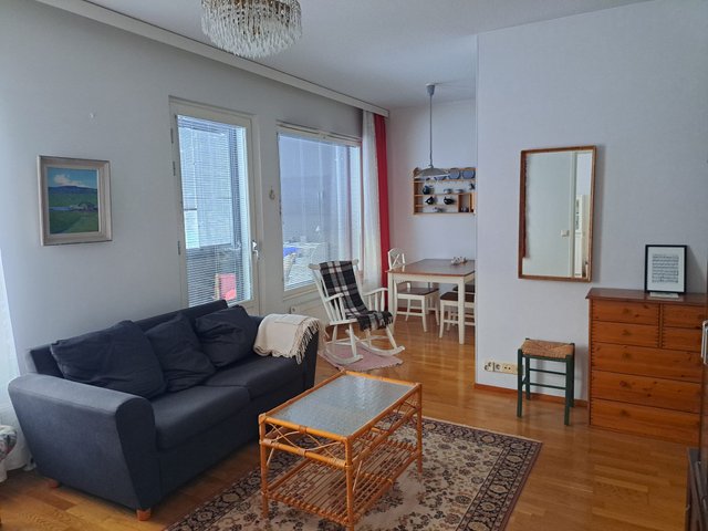 Asunnon tilava olohuone avautuu lasitetulle parvekkeelle, joka tarjoaa mukavaa lisätilaa ja mahdollisuuden nauttia ulkoilmasta ympäri vuoden. Keittiö ruokailutilalla tekee arjesta sujuvaa, ja makuuhuoneen yhteydessä oleva vaatehuone tarjoaa runsaasti säilytystilaa. Käytännöllinen kylpyhuone ja oma sauna lisäävät asumismukavuutta.