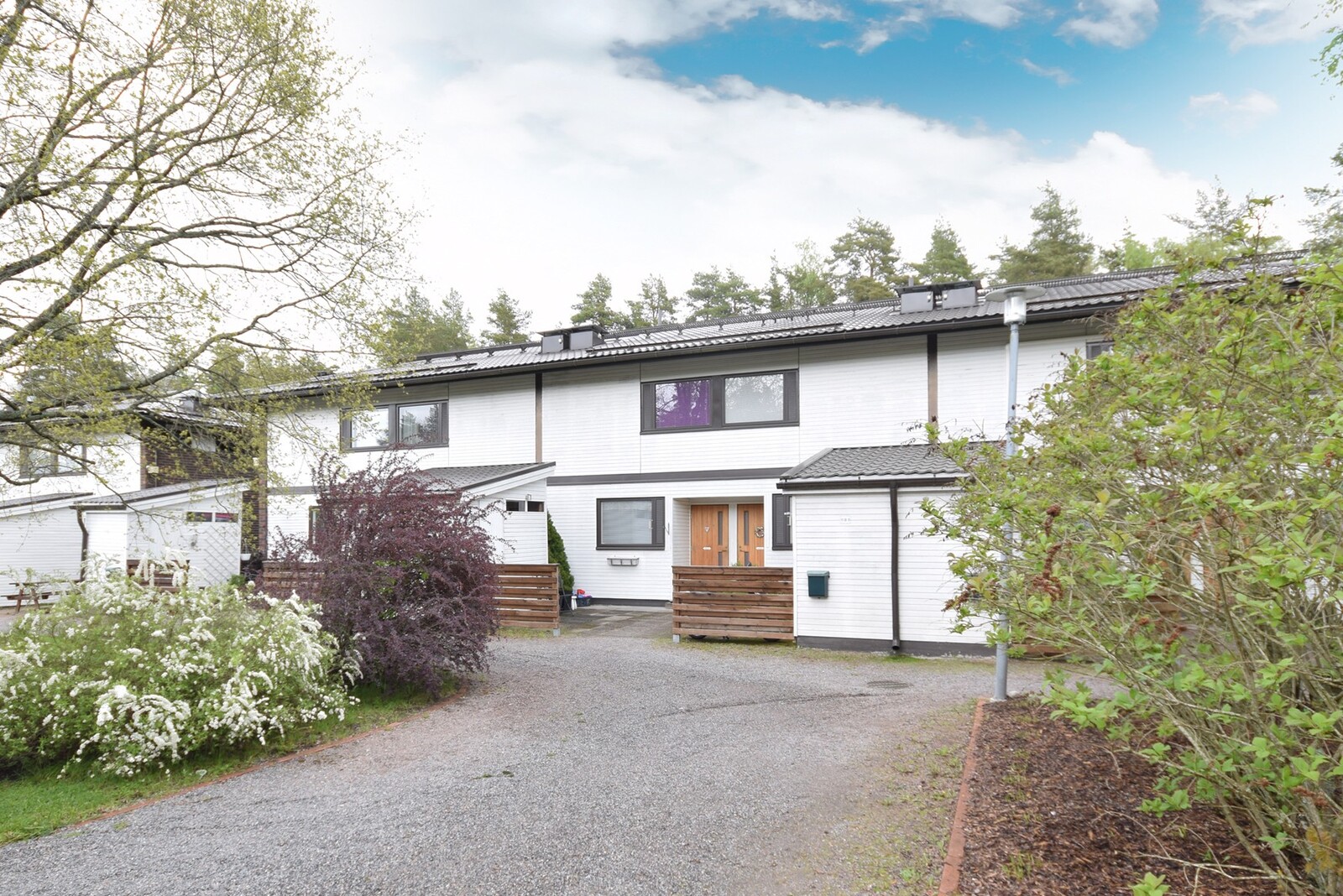 Erinomainen valinta uudeksi kodiksesi. Kodikas, hyväpohjainen rivitalokolmio kahdessa tasossa, rauhallisella pientaloalueella. Alakerrassa olohuone ja moderni keittiö, wc, yläkerrassa kaksi mukavan kokoista makuuhuonetta ja pesuhuone/saunatilat, mistä löytyy myös wc-istuin. Suojaisa takapiha rajoittuu idylliseen metsikköön ja upeisiin kallioihin. Taloyhtiöllä myös todella viihtyisä ja vehreä piha-alue. Maalämpöurakka alkanut taloyhtiössä.