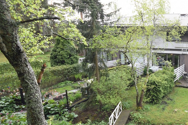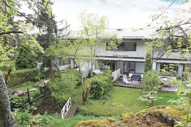 - piha-alue rajoittuu idylliseen metsikköön, piha nurmikolla/osin laudoitettu, ilmansuunta pohjoiseen, etupiha etelään.