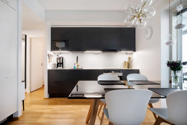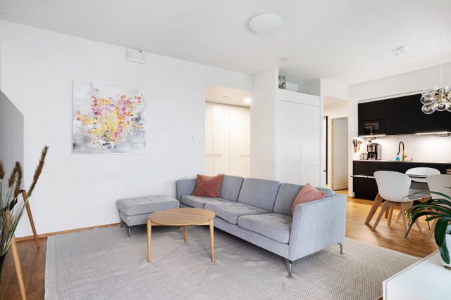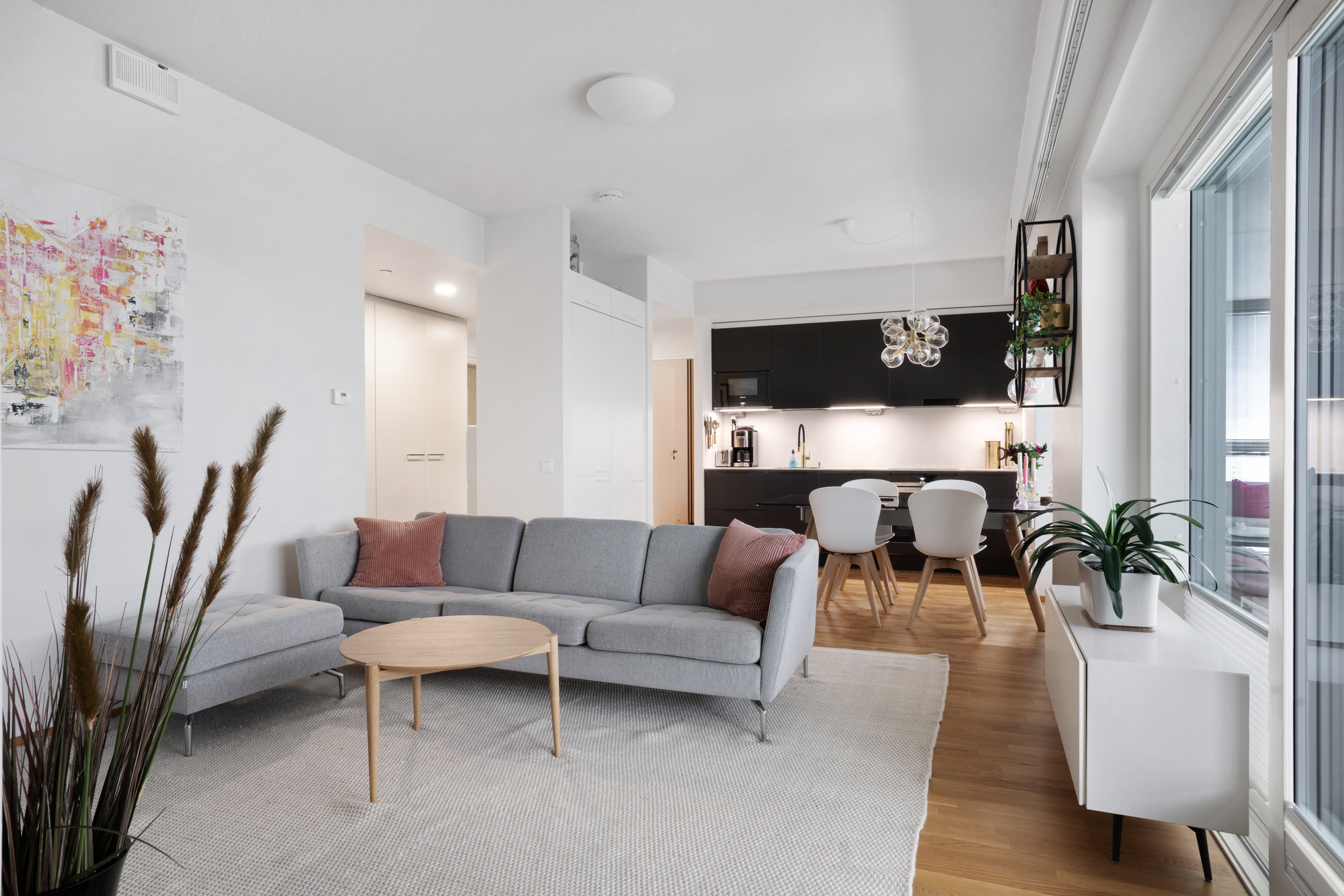 Asunnossa on kaksi makuuhuonetta, avara olohuone ja hyvin varusteltu keittiö, jossa on muun muassa kvartsikomposiittitasot ja induktioliesi. Kylpyhuoneessa on tilaa pesukoneelle, ja oma sauna tuo arkeen luksusta. Parvekkeella voi nauttia iltapäivän auringosta ja rauhallisista hetkistä.
