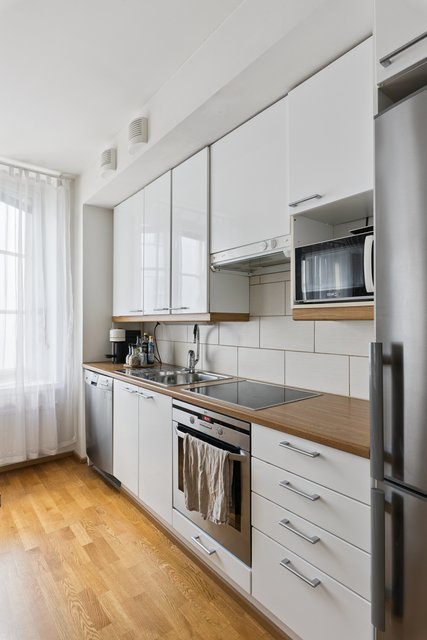 Hyvä kuntoinen viehättävä yksiö Fredrikinkadulla, Kamppissa, Haikara korttelissa. Asunto sijaitsee yhtiön 1952 valmistuneessa pihasiivessä, joka on saneerattu asunnoiksi vuonna 2010. Yhtiön päärakennus on valmistunut vuonna 1928, joka edustaa klassista 1920-luvun arkkitehtuuria. Yhtiössä on liiketiloja, joista tulee mukavasti vuokratuloja.