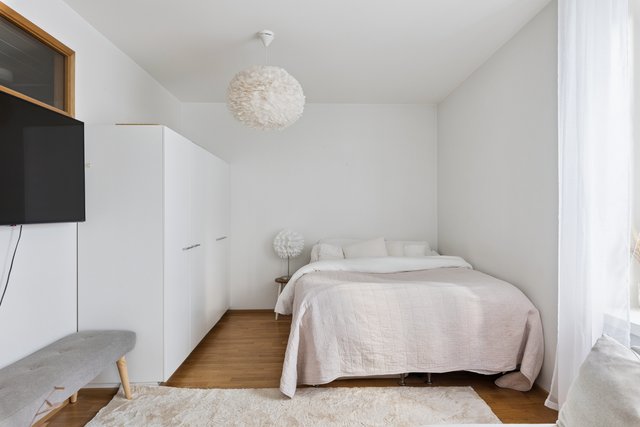 Asunnossa on ihanat leveät ikkunalaudat ja näkymät rauhalliselle sisäpihalle, makuualkovi, paljon kaappitilaa, tilava kylpyhuone. Asuntoa on pidetty hyvin ja se on hyvässä kunnossa. Asunnon alapuolella on yhtiön autotallit, joten ikkunat eivät ole maantasalla.