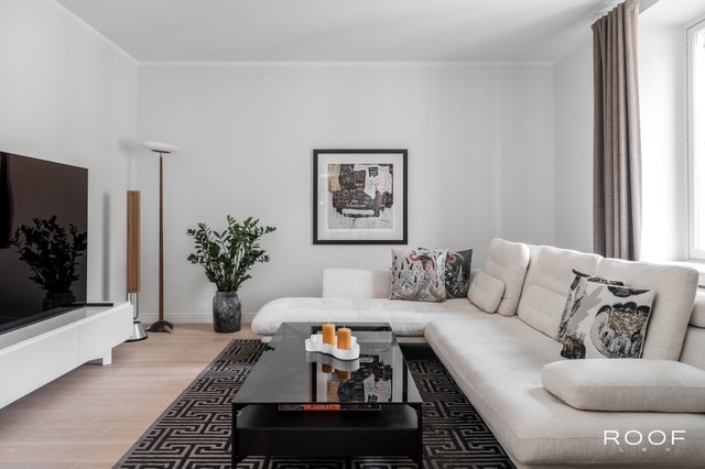 - Huoneistossa on himmennettävät ja upotetut kattovalaistukset, tyylikkäät patterisuojat, huoneiston verhotangot ja kylpyhuoneen verhot.