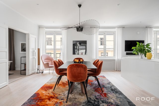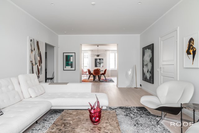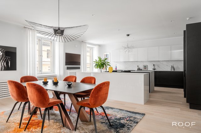 Hienokuntoinen huoneisto sijaitsee keskeisellä paikalla Fredrikinkadulla, aivan Helsingin Kampin palveluiden ja liikenneyhteyksien äärellä. Asunnossa yhdistyy arvokkaan talon tunnelma täysin uusittuun ja muuttovalmiiseen kauniiseen kotiin. Valoisan 223 neliön asunnon moderni keittiö saarekkeineen, ruokailutila ja olohuone muodostavat avoimen ja avaran kokonaisuuden, joka palvelee niin arkea kuin yhteisiä hetkiä perheen ja ystävien kanssa. Kaksi ranskalaista parveketta, erkkeri ja suuret ikkunat tuovat asuntoon valoa ja tunnelmaa.