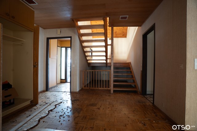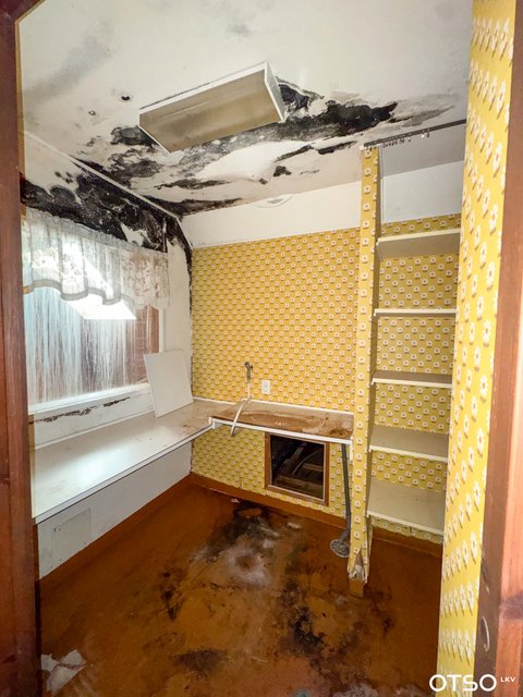 Rakennus on ollut asumattomana ja katosta on tullut vesi läpi.