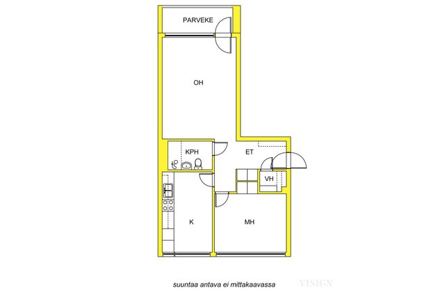 - Yhtiöjärjestyksen mukainen, Isännöitsijäntodistuksen mukainen, (Pinta-ala ei ole tarkistusmitattu ja todellinen pinta-ala voi olla suurempi tai pienempi, kuin ilmoitettu)