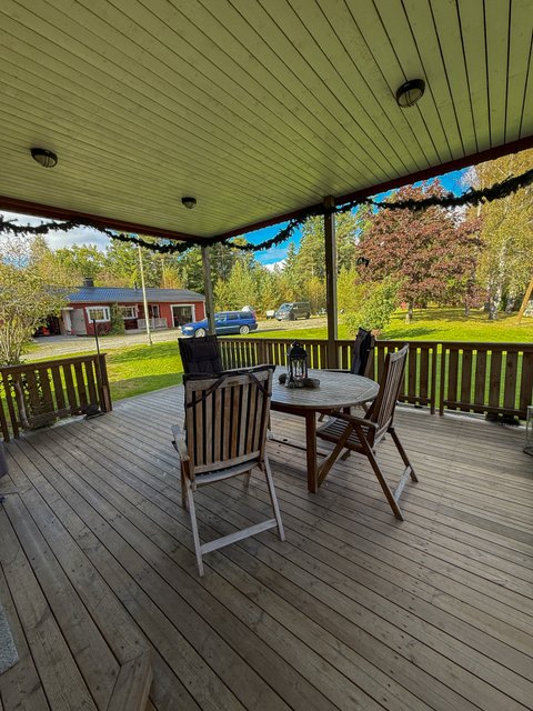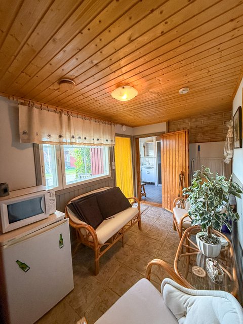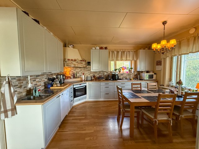 Huset har två sovrum, ett rymligt vardagsrum och ett kök med moderna vitvaror. Egen bastu och en vedeldad spis erbjuder avkopplande stunder mitt i vardagen. Dessutom ger garaget och det separata basturum ytterligare förvaringsutrymme och övernattnings möjligheter.