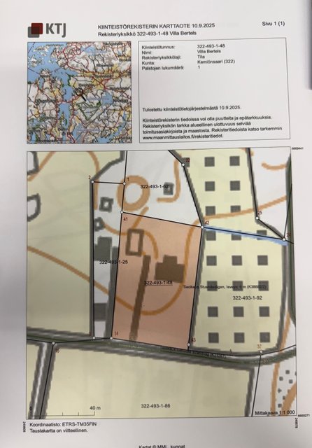 - Ei tarkistusmitattu. Pinta-alat saattavat tämän ikäisissä kohteissa (rekisteröity ennen 01.01.1992) poiketa olennaisestikin asuinrakennusten nykyisten mittaustapojen ja standardien (SFS 5139) mukaan laskettavasta asuintilojen pinta-alasta. Pinta-ala voi siis olla edellä mainittua pienempi tai suurempi.
