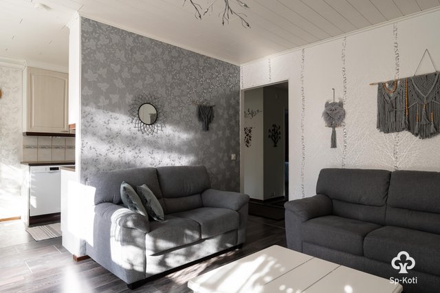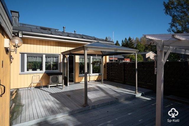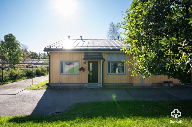 Olohuoneesta on käynti omalle terassille, jossa voit nauttia rauhallisista hetkistä. Keittiö on hyvin varusteltu ja siellä on kaikki tarvittava arjen sujuvuuteen. Kaksi makuuhuonetta tarjoavat tilaa perheelle tai työhuoneelle. Kylpyhuone ja sauna tuovat arjen luksusta, ja ilmalämpöpumppu pitää huolen miellyttävästä sisäilmasta.