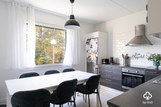 Asunnon olohuoneesta on käynti länteen avautuvalle parvekkeelle, josta voi nauttia ilta-auringosta. Tyylikkäästi remontoitu Puustellin keittiö on varustettu moderneilla kodinkoneilla, kuten integroidulla astianpesukoneella ja induktioliedellä. Kylpyhuoneessa on lattialämmitys, mikä lisää arjen mukavuutta.