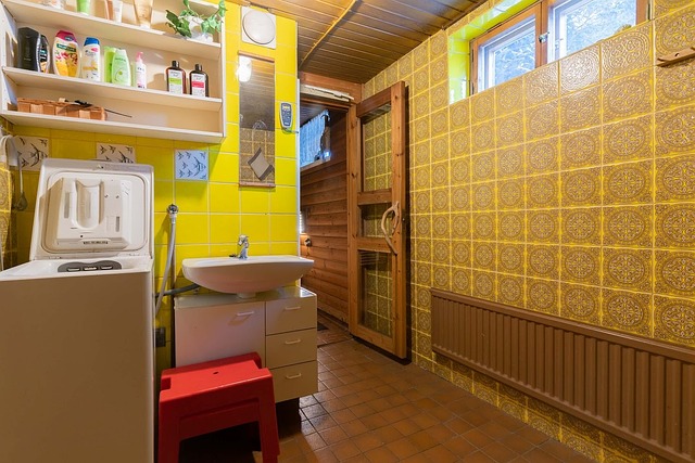 - Suihku, peili, lattialämmitys, ja pesukoneliitäntä