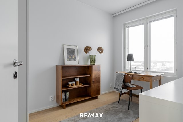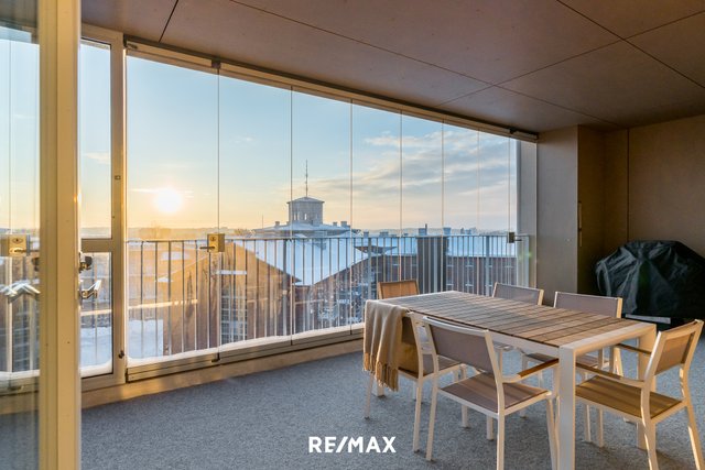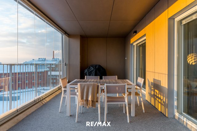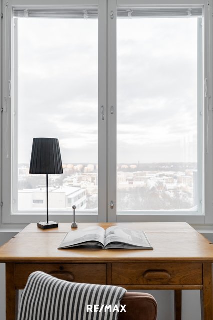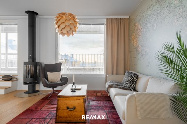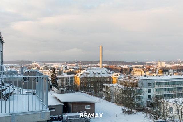 Tämä upea ylimmän kerroksen huoneisto sijaitsee Turun halutulla Kakolan alueella. Asunnosta avautuvat henkeäsalpaavat näkymät yli kaupungin kattojen aina merelle asti.