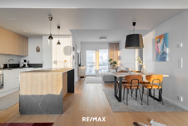 Asunto sijaitsee talon ylimmässä kerroksessa, mikä takaa rauhallisen ja yksityisen asumisen. Lattialämmitys ja koneellinen ilmanvaihto lisäävät asumismukavuutta, ja energiatehokkuusluokka A2018 pitää huolen alhaisista energiakustannuksista. Keittiö on varusteltu laadukkailla kodinkoneilla ja saarekkeella, mikä tekee siitä täydellisen paikan ruoanlaittoon ja seurusteluun.