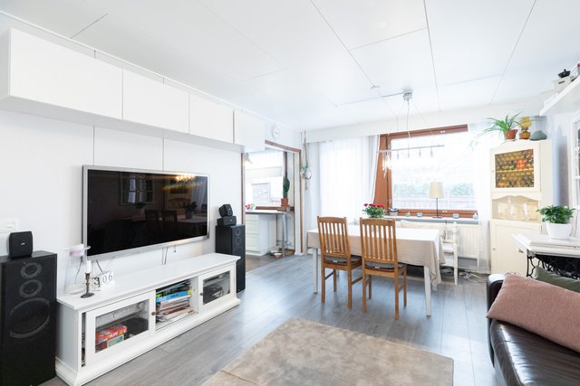 - Olohuoneen lattiat ja seinät käyty läpi v. 2020. Lattia: vinyyli. Seinät: maalattu, tapetti.
