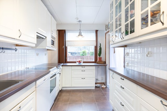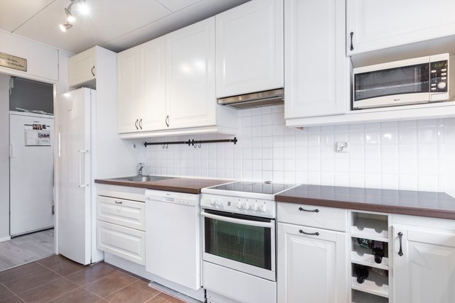 - Keittiö uusittu v. 2006 Laattalattia lattialämmityksellä Varustus: jääkaappi, astianpesukone, liesituuletin / suodatin. Liesi: keraaminen. Lattia: laatta.