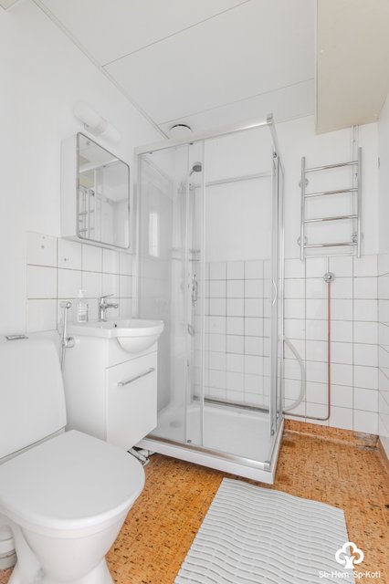 - WC-istuin, suihkukaappi, peili, peilikaappi, ja pesuallas