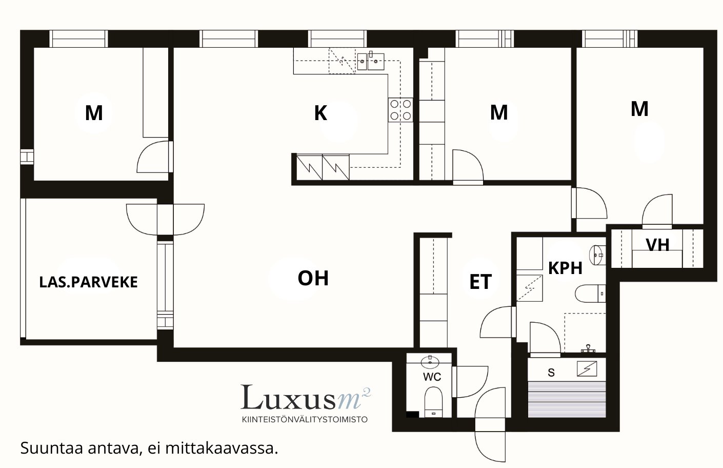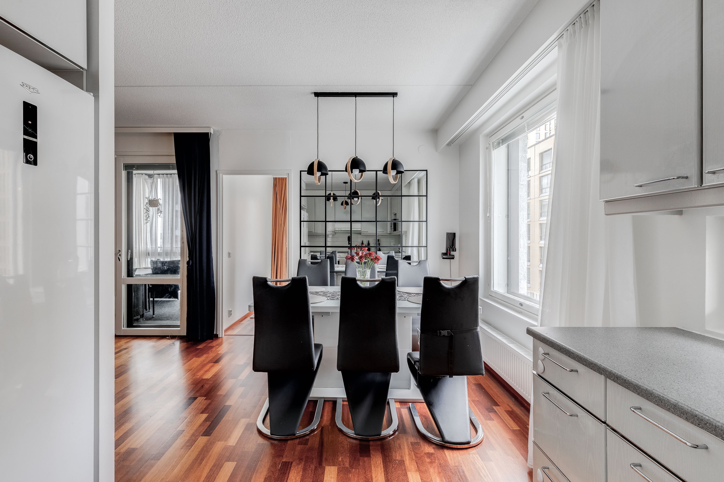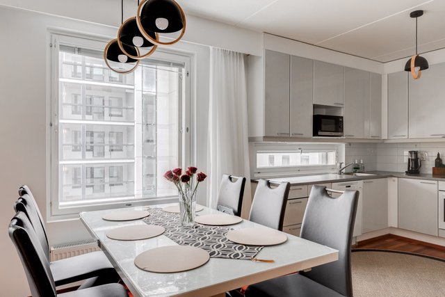 Olohuone on tilava ja valoisa, ja sieltä on käynti lasitetulle parvekkeelle – täydellinen paikka nauttia aamukahvista tai rentoutua iltaisin. Moderni keittiö on varusteltu kaikilla tarpeellisilla kodinkoneilla. Kolme makuuhuonetta tarjoavat runsaasti tilaa perheelle tai työhuoneeksi. Oma sauna tuo arkeen ripauksen luksusta ja helpottaa rentoutumista kiireisen päivän jälkeen.