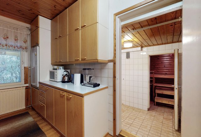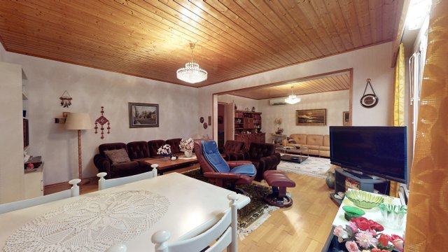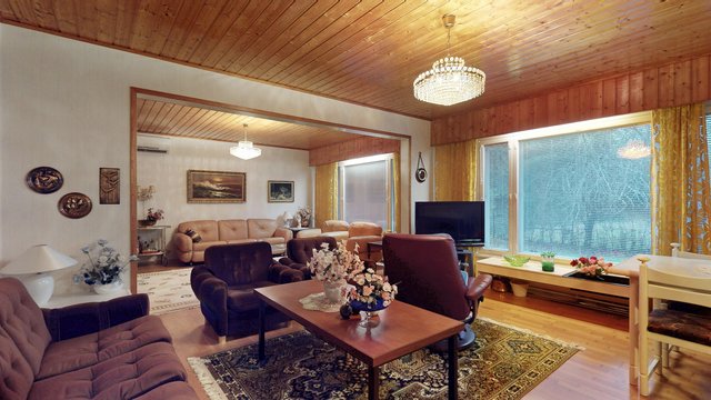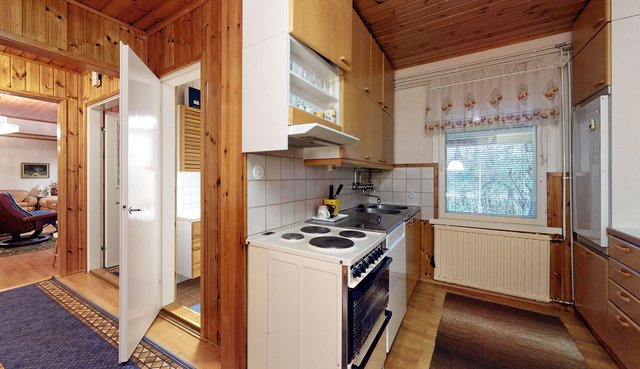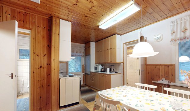 Noin 117 m² asuintilaa, johon kuuluu kolme makuuhuonetta, olohuone, keittiö, pesutilat ja sauna. Lisäksi autotalli ja varastotilat tuovat runsaasti säilytysmahdollisuuksia. Katto on maalattu vuonna 2021, mikä antaa hyvän pohjan jatkoremontille.