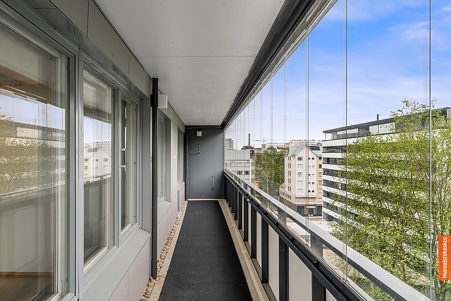 Kulmahuoneistossa on ikkunat kolmeen suuntaan ja ne avautuvat yli naapuritalojen, joten näkymät ovat siis upeat ja luonnonvaloa tulee reilusti.