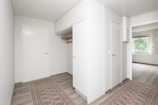 Kylpyhuone on remontoitu hyvällä maulla ja siellä on kaikki tarpeellinen pyyhekuivaimesta pesukoneliitäntään. Lasitettu eteläparveke tuo lisätilaa ja mahdollisuuden nauttia ulkoilmasta ympäri vuoden. Asunnossa on myös vaatehuone ja taloyhtiön puolesta kellarikomero, jotka tarjoavat runsaasti säilytystilaa.