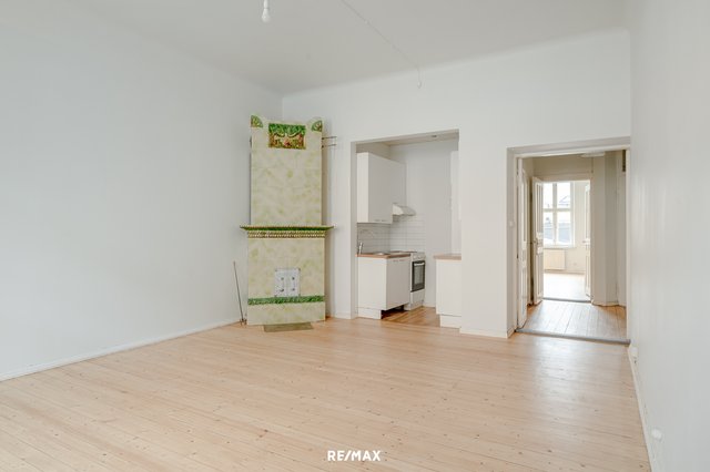 Asunnon olohuoneesta avautuvat näkymät  Hämeentielle, kun taas makuuhuone tarjoaa rauhallisen näkymän sisäpihalle. Olohuoneessa on kaunis kakluuni, joka tuo lisälämpöä ja tunnelmaa tilaan. Keittokomero avautuu olohuoneeseen ja siitä saisi uudelleen suunnittelmalla ja remontoimalla helposti vielä toimivamman. Asunnossa on monen arvostamat lautalattiat.