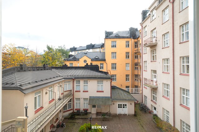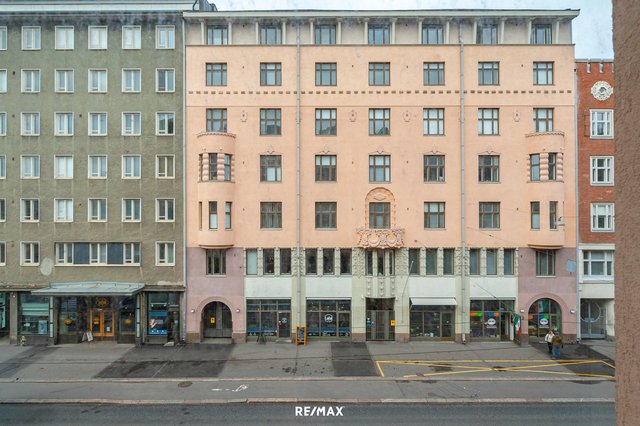 - Olohuoneesta näkymät Hämeentielle ja makuuhuoneesta rauhalliselle sisäpihalle.