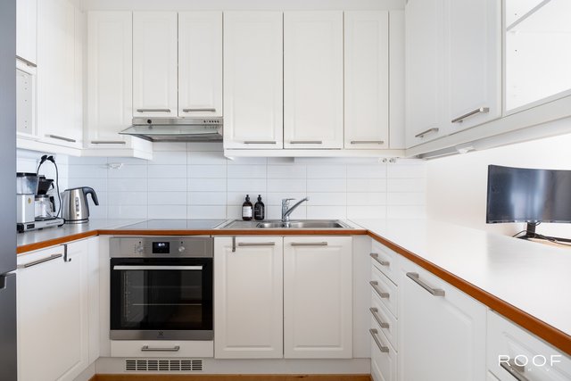 - SEINÄT: Laatta, maalattu LATTIA: Parketti TYÖTASOT: Laminaatti VARUSTELU: Induktioliesi ja uuni (uusittu 04/2025), astianpesukone (Electrolux), liesituuletin, hana, kaapisto, allas, jääkaappipakastin (Indesit).