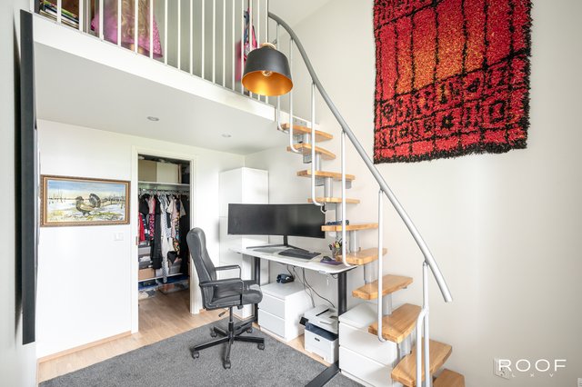 Asunnon avara tila ja korkea huonekorkeus tuovat ilmavuutta ja tilantuntua, jota korostavat tyylikkäät parkettilattiat ja laadukkaat pintamateriaalit. Huoneistoon on rakennettu kaksi parvea, jotka tarjoavat lisää säilytys- ja oleskelutilaa – erinomainen ratkaisu esimerkiksi nukkumaparviksi.