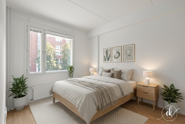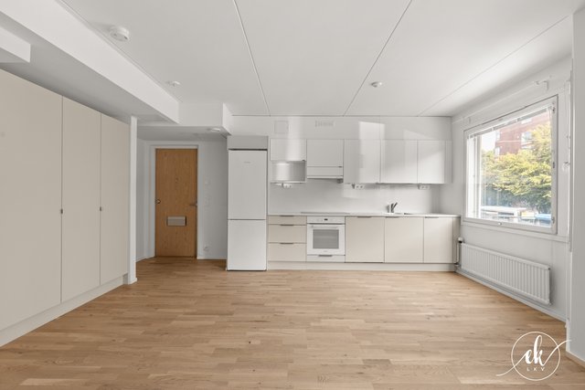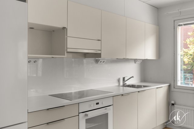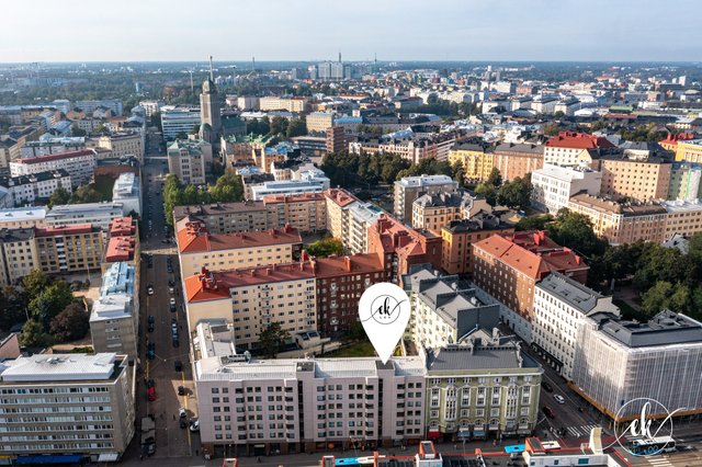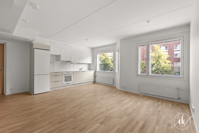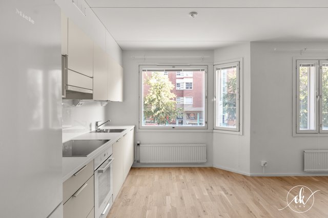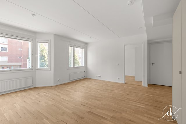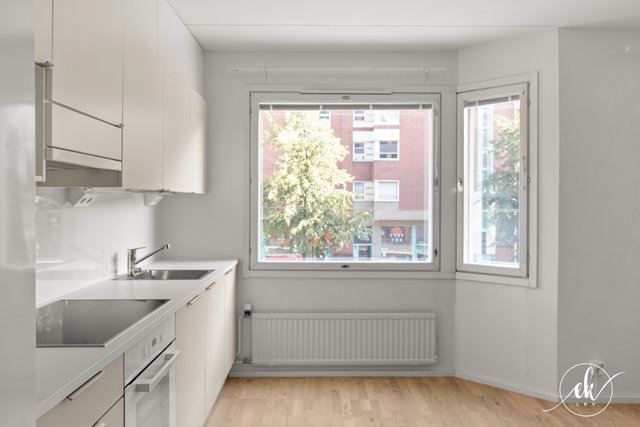 This charming one-bedroom apartment is located in the vibrant Kallio district of Helsinki, on Hämeentie — a street well-known for its lively urban culture and diverse range of services. The apartment was fully renovated in 2024 and is situated on the second floor of the building, offering spacious street views. The building is equipped with an elevator, ensuring easy access.