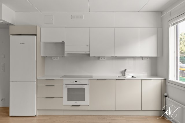 Asunnon keittiö on tyylikkäästi uudistettu ja varusteltu moderneilla kodinkoneilla, mikä tekee ruoanlaitosta nautinnollista. Olohuoneen ja makuuhuoneen lattiat ovat kaunista parkettia, joka tuo tilaan lämpöä ja kodikkuutta. Modernissa kylpyhuoneessa on laatoitetut pinnat ja kaikki tarvittavat mukavuudet, kuten pesukoneliitäntä.